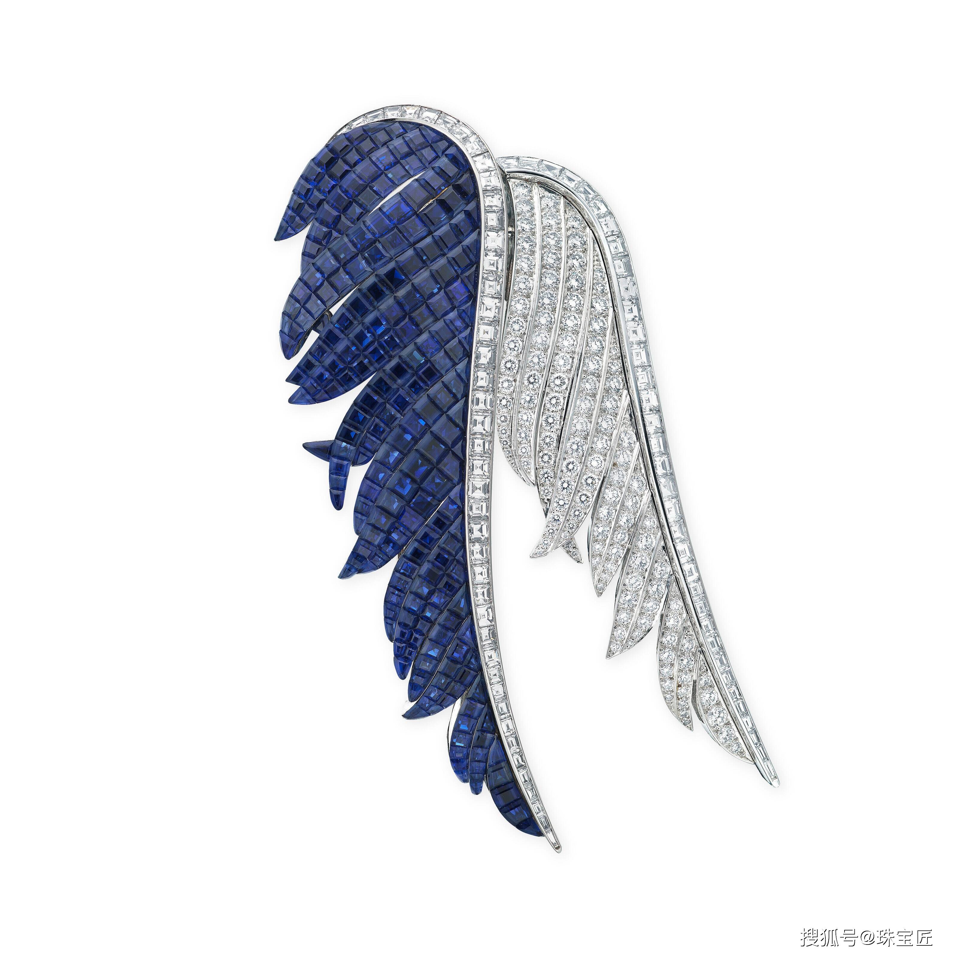 梵克雅宝设计,由蓝宝石和钻石镶嵌而成,蓝宝石胸针10.1cm ,钻石胸针9.1cm;