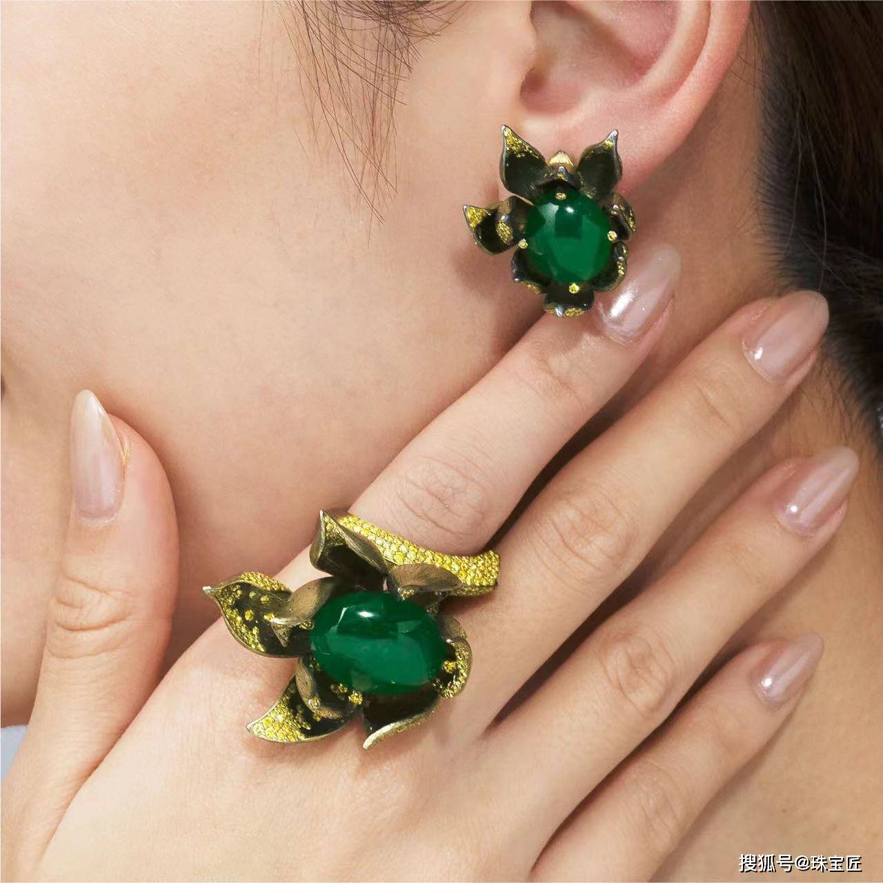 祖母绿及钻石套装,由项链、耳环、戒指组成,祖母绿产自哥伦比亚,并配以钻石作为点缀,附SSEF证书;