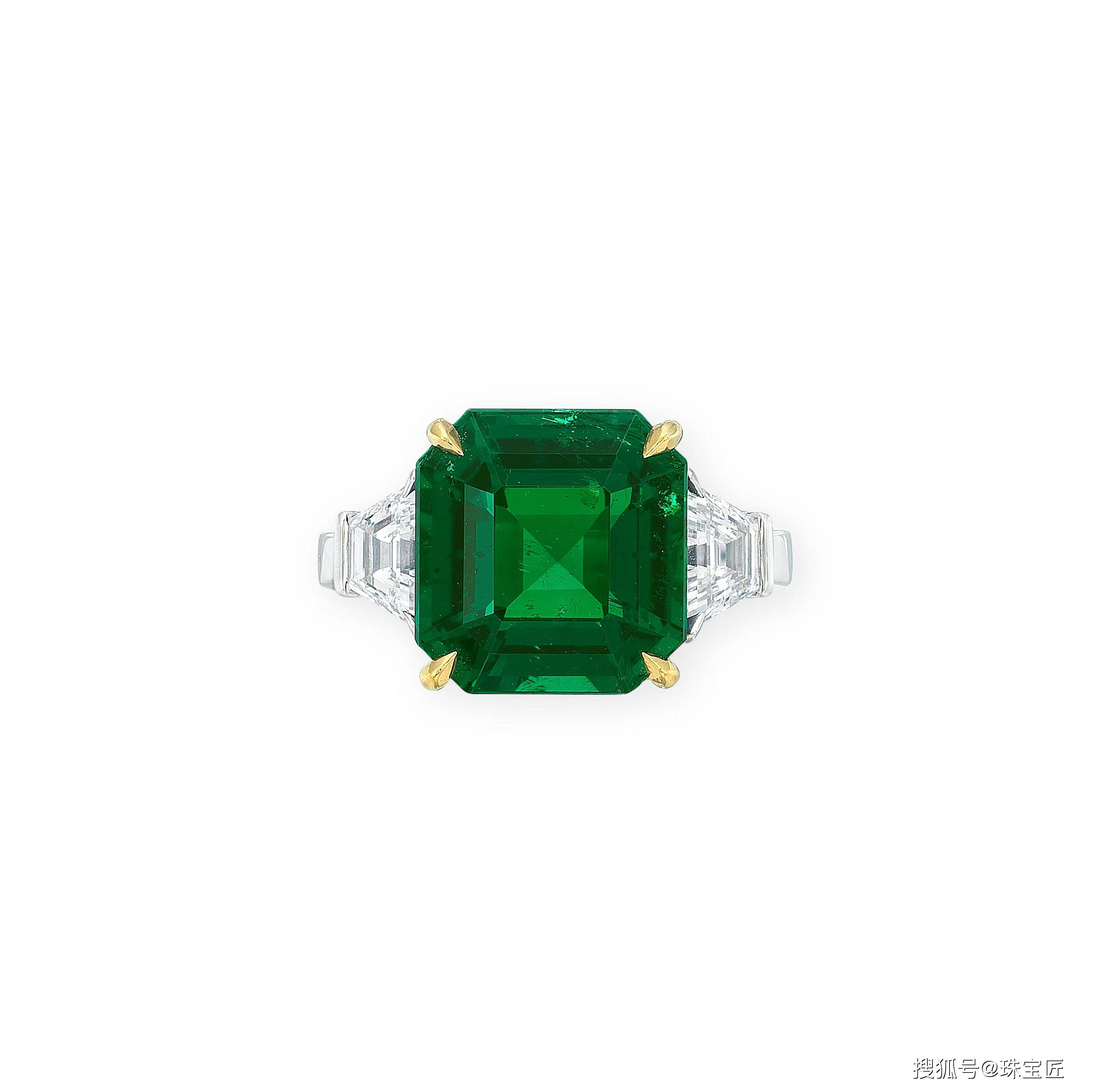 Ronald Abram设计,主石是一枚7.21克拉长方形哥伦比亚天然祖母绿,附SSEF、古柏林及AGL证书;