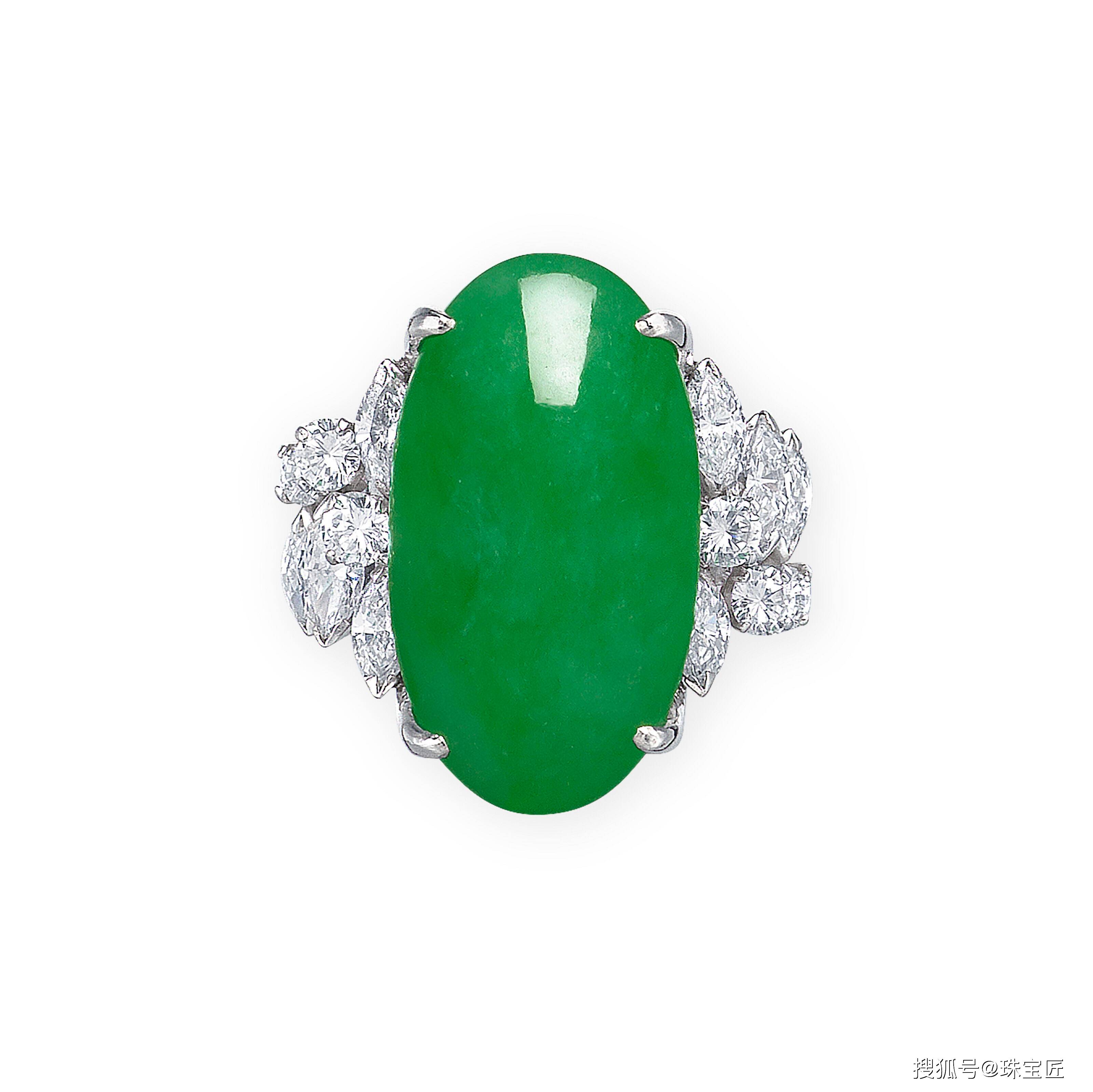 翡翠及钻石戒指,由钻石和翡翠镶嵌而成;