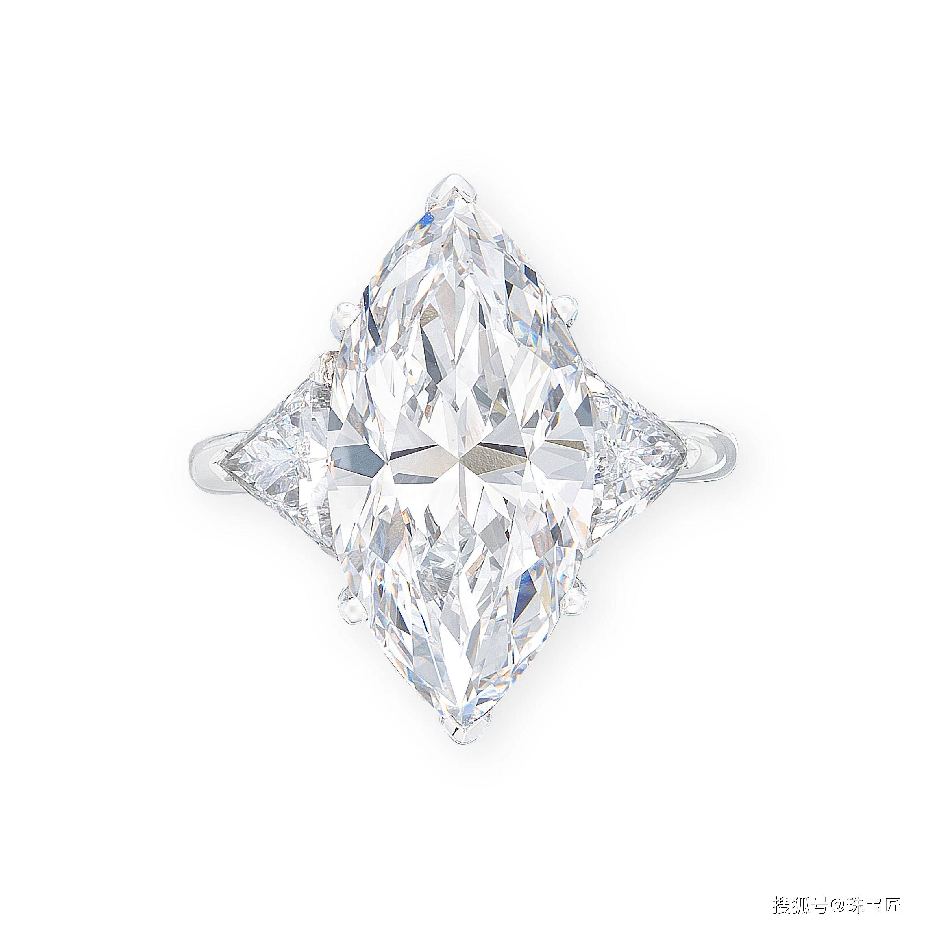 卡地亚出品,主石是一颗7.48克拉榄尖形D/IF Type lla 钻石,附GIA证书;