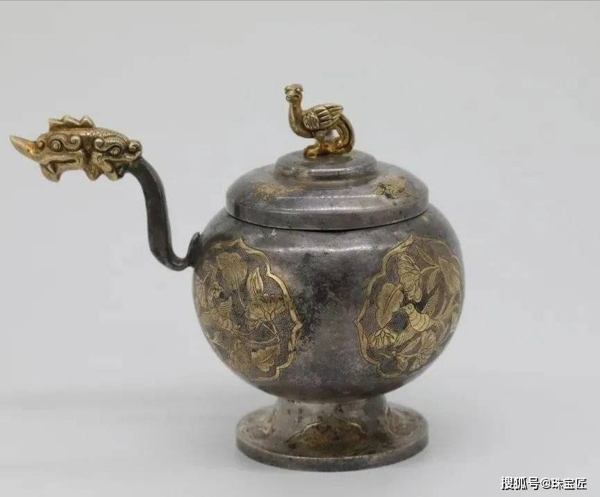 这个鎏金鹦鹉纹提梁银罐代表着唐代金银器制作的最高水平,堪称实用性与艺术性完美结合的传世佳品。