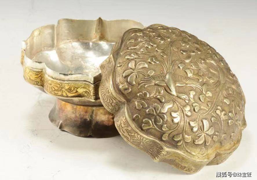 唐 银鎏金莲瓣形银茶盒 图源:动脉影