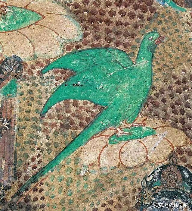 在唐代敦煌壁画中,鹦鹉图像的数量明显增加,鹦鹉也从南北朝时期的装饰性图案,转变成了壁画中的主要形象。