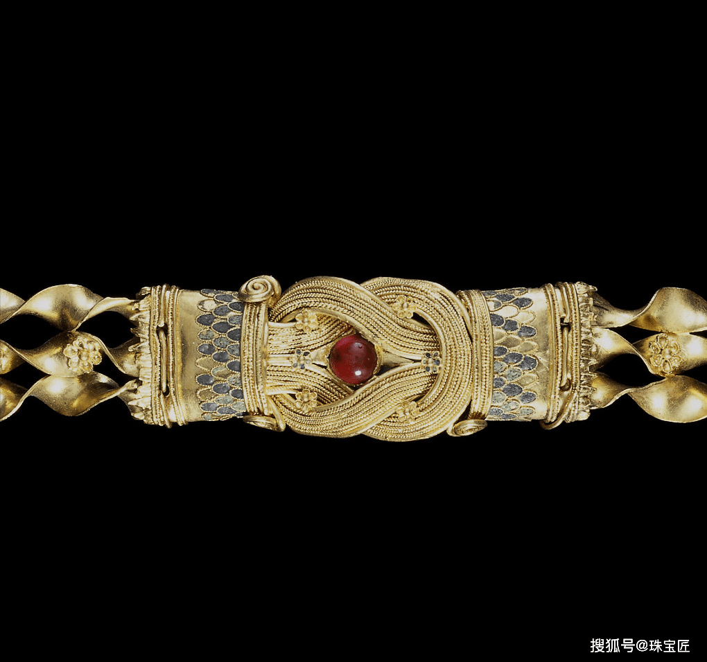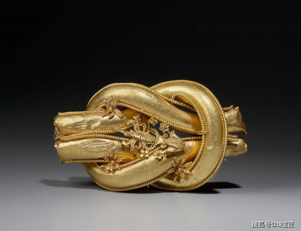 当然,古希腊人不仅在生活中会频繁使用这一独特的绳结,还因其独特的纹路,将其运用到这一时期的项链、头冠、手镯等珠宝配饰上,并以石榴石、红玉髓等宝石镶嵌或辅以珐琅、金银细丝工艺,样式非常华丽。