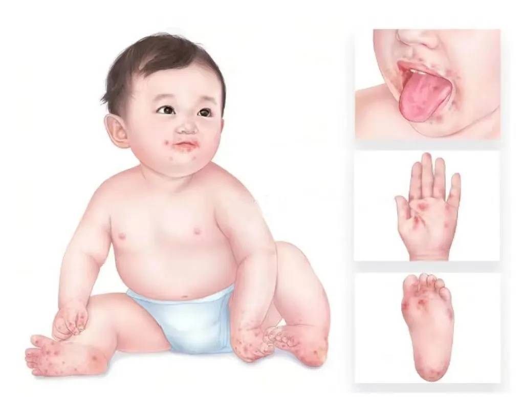 典型的手足口病会在手掌心、脚掌心、口腔黏膜、臀部等部位出现皮疹、疱疹、溃疡。手足口病属于自限性疾病,多数孩子为轻症,体温一般在38 ℃左右,从感染到出现症状约为2—10天,平均3—5天。