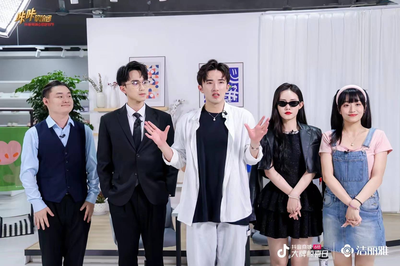 ● 石展承的第一场抖音直播,边演短剧边带货。图源:洁丽雅官方抖音