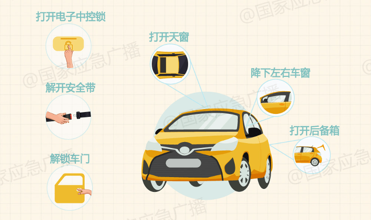 一般来说,车辆入水时电路并不会立即失效,车内人员应以最快的速度解开安全带、解锁车门、车窗,在车辆完全沉没前迅速逃离。